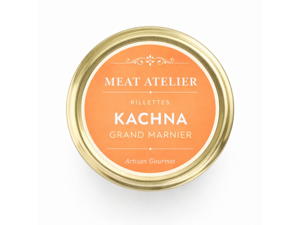 Kachní rillettes připravované pomalu v malých šaržích, ručně trhané a dochucené jemným nádechem pomerančového likéru.